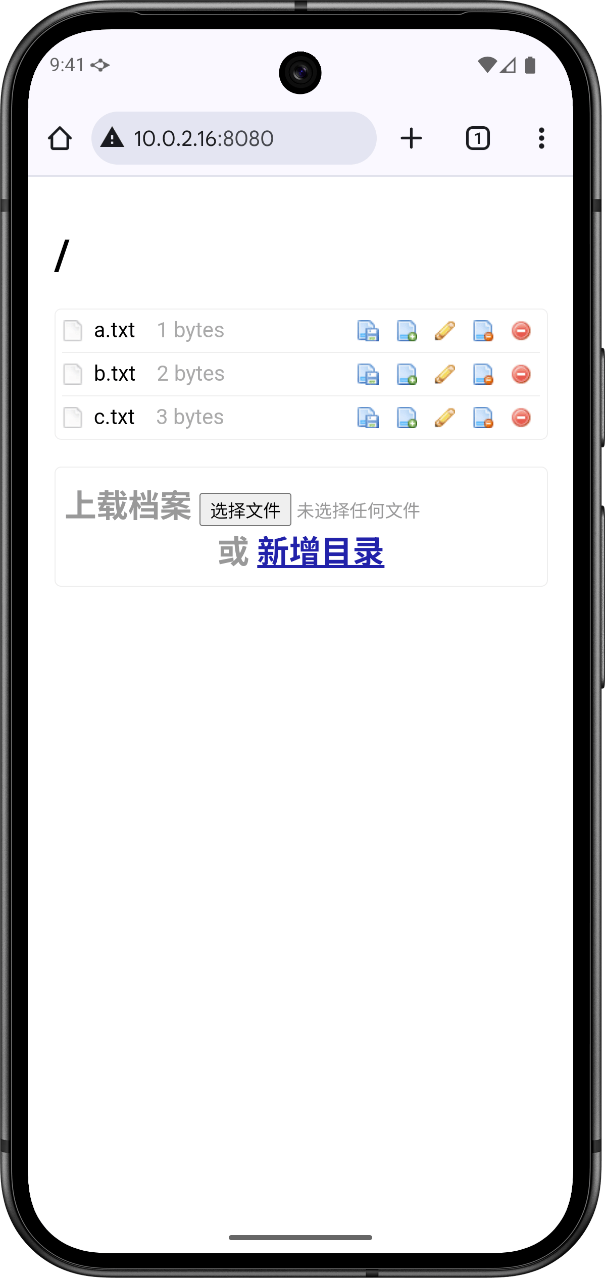 只要选择一个资料夹,《WebDAV 分享传送》就可运行一个 WebDAV 伺服器让其他人存取资料夹下的档案。你不需要授予程式存取装置上所有档案的权限。